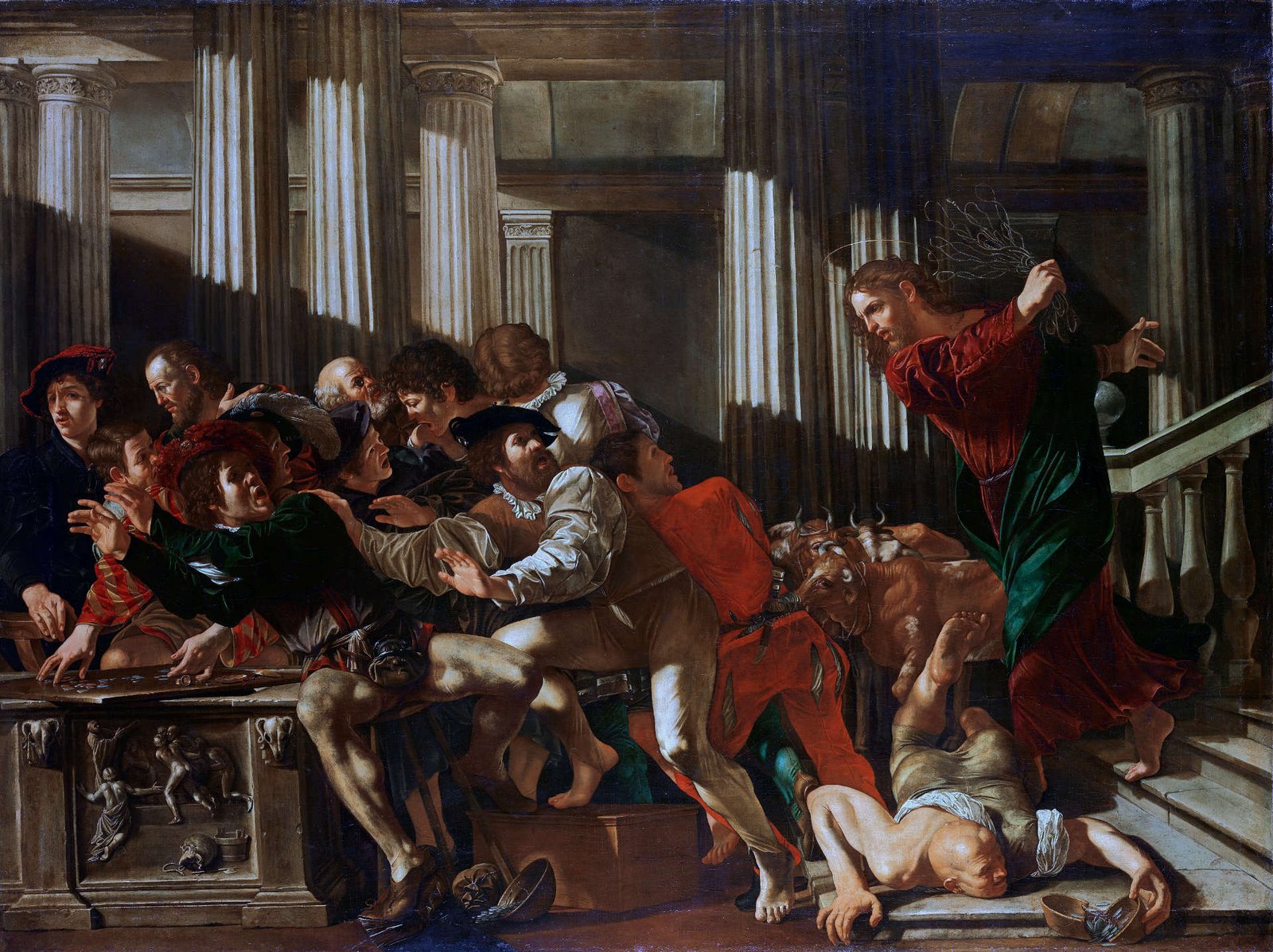 «12 Entró Jesús en el templo de Dios y arrojó de allí a cuantos vendían y compraban en el templo (1), y derribó las mesas de los cambistas y los asientos de los vendedores de palomas, 13 diciéndoles: Está escrito: Mi casa es casa de oración, pero vosotros la habéis convertido en cueva de ladrones.» – Mateo 21, 12-13.