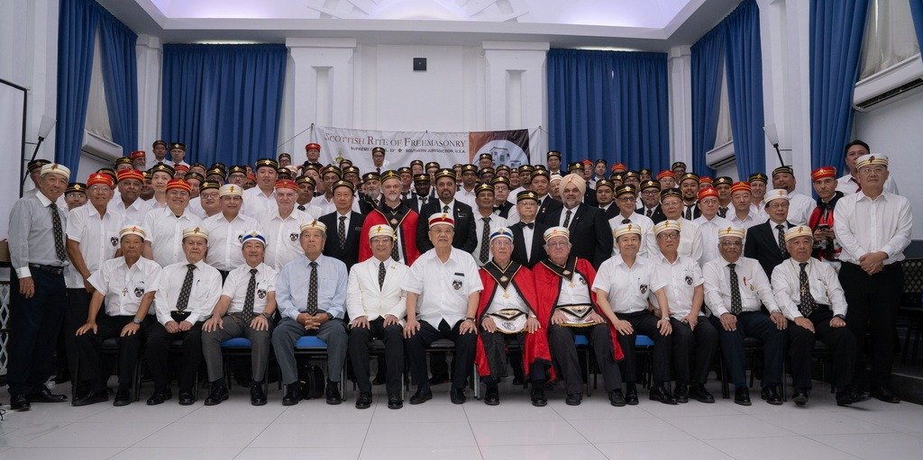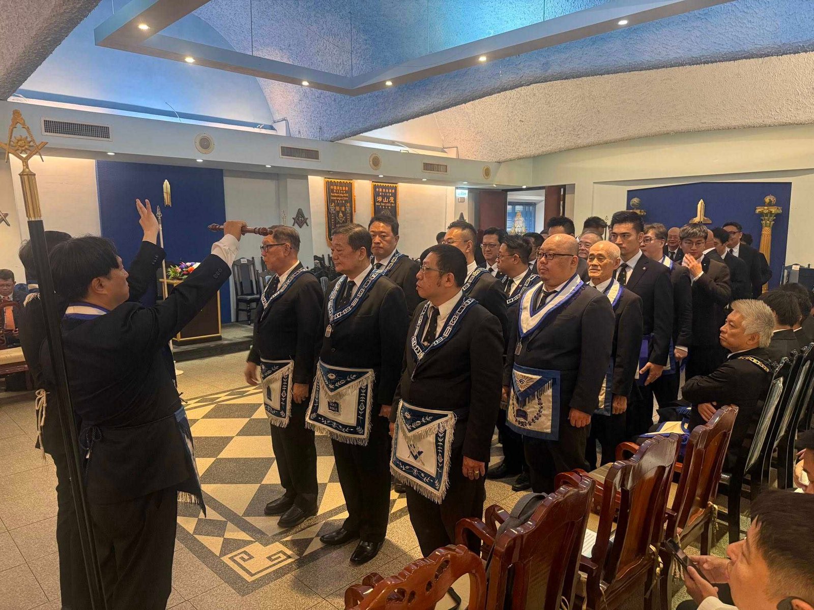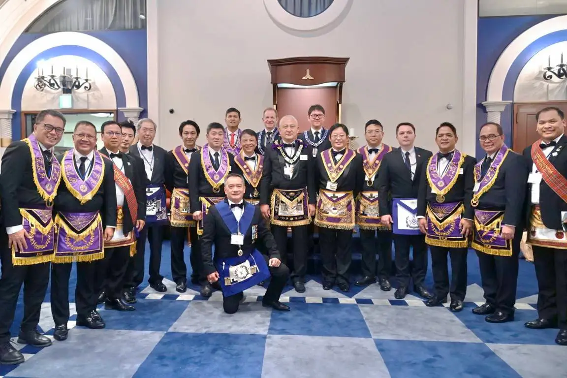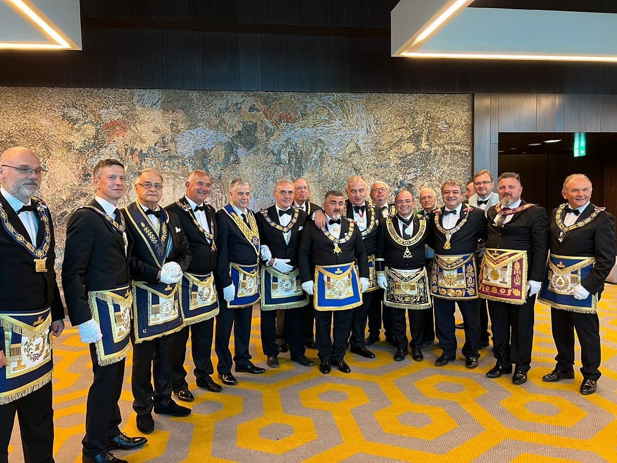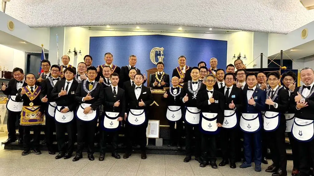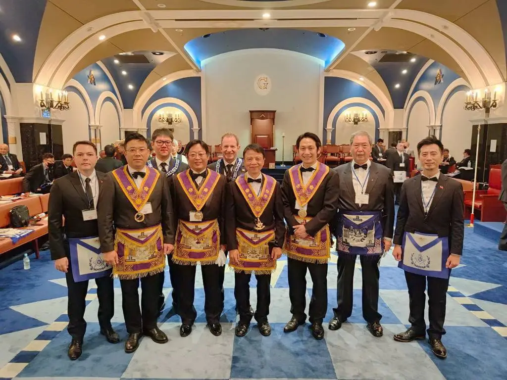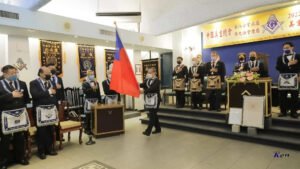 Desde Taiwan (copia, copia), nos muestran a los representantes de la Gran Logia de China visitando la ceremonia de Instalación del Gran Maestre de la Gran Logia Unida de Victoria (Australia), el 26 de marzo de 2023.