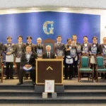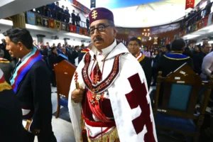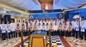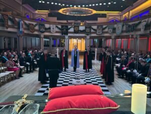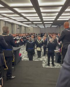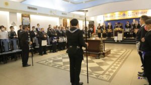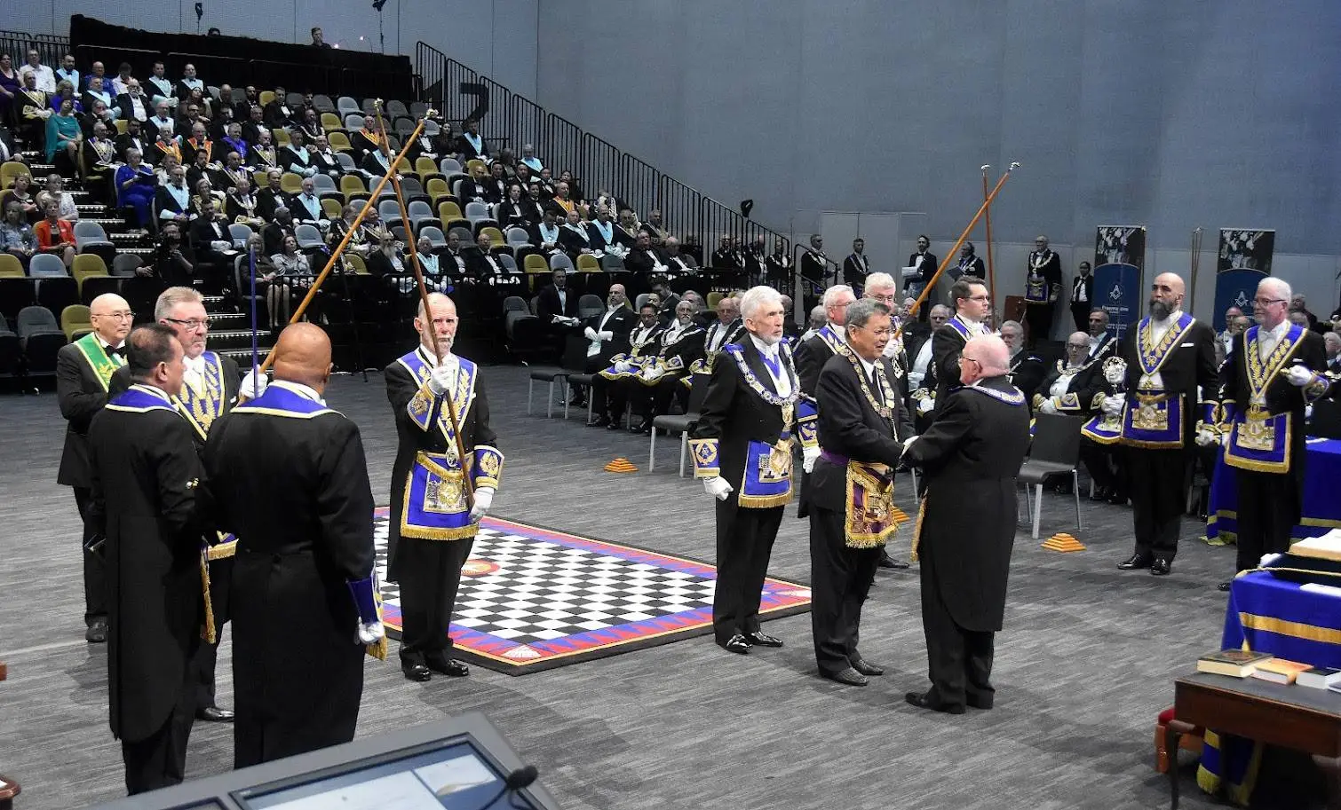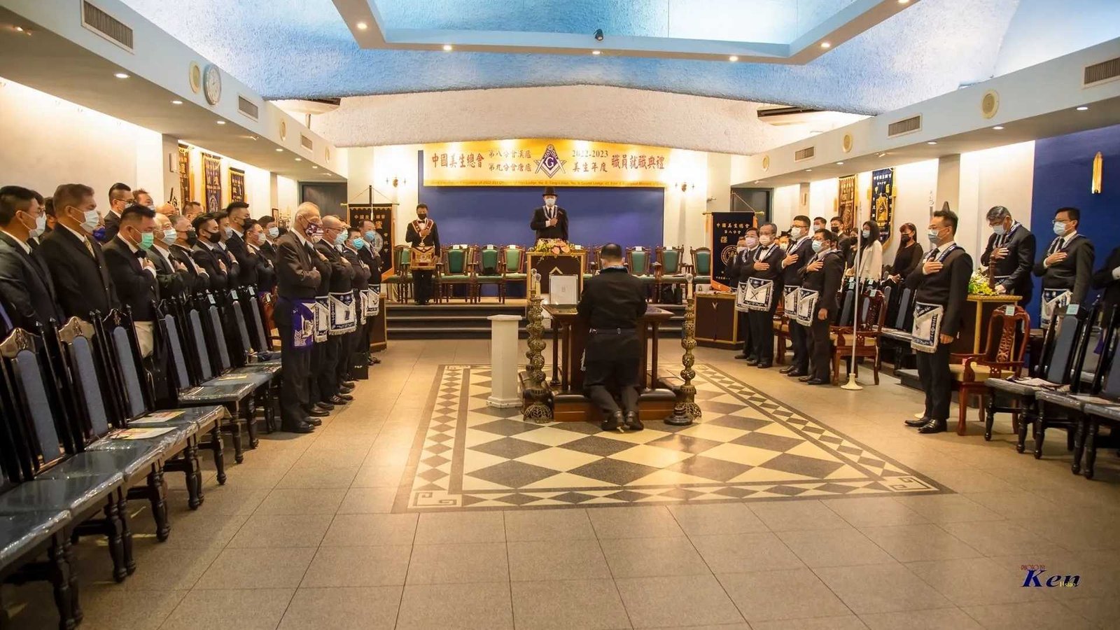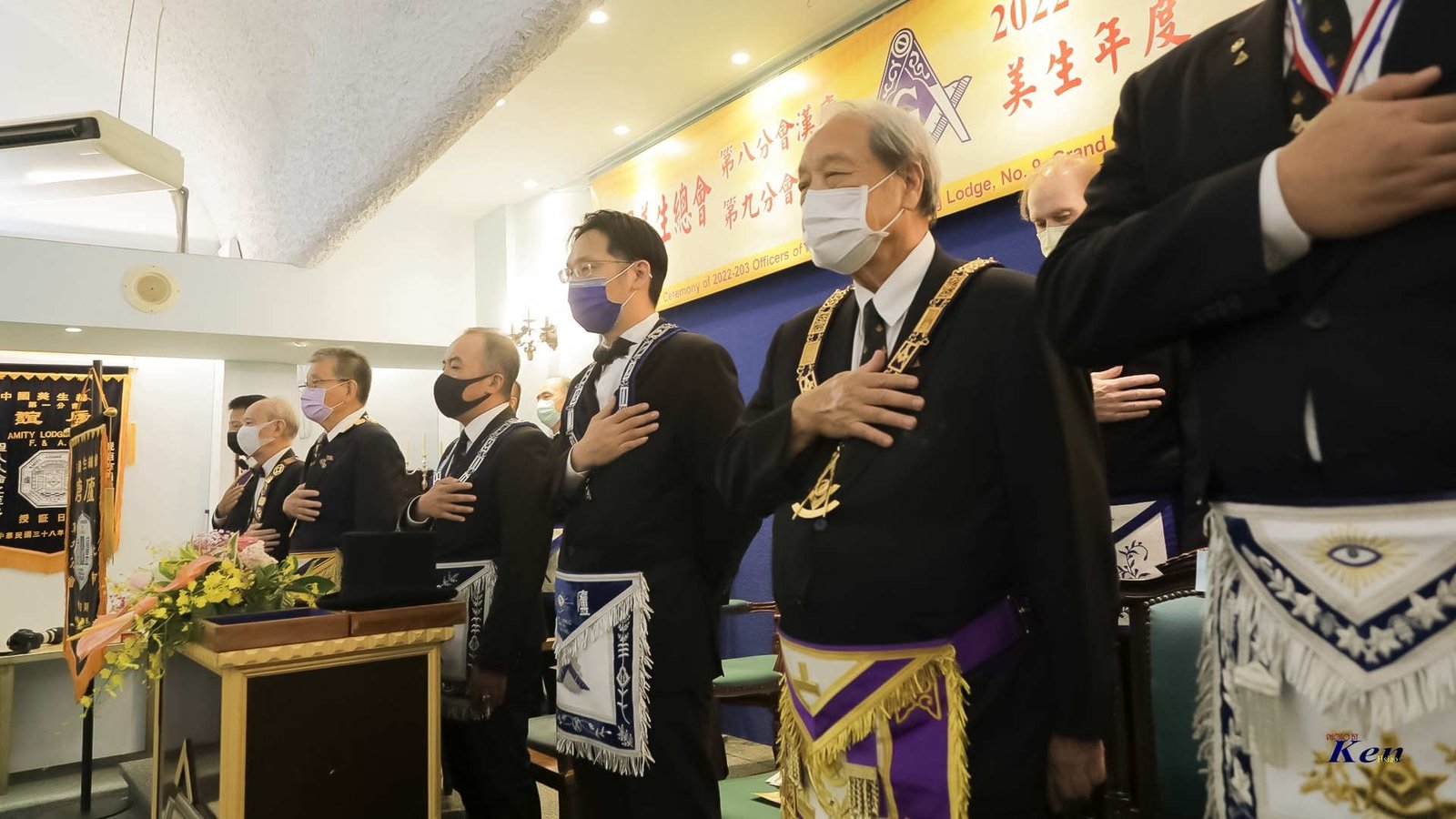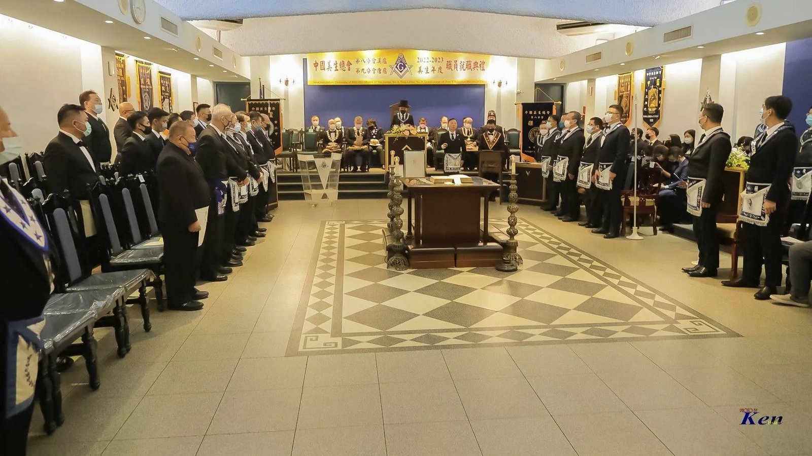 Desde Taiwan (copia, copia), nos muestran a los representantes de la Gran Logia de China visitando la ceremonia de Instalación del Gran Maestre de la Gran Logia Unida de Victoria (Australia), el 26 de marzo de 2023.