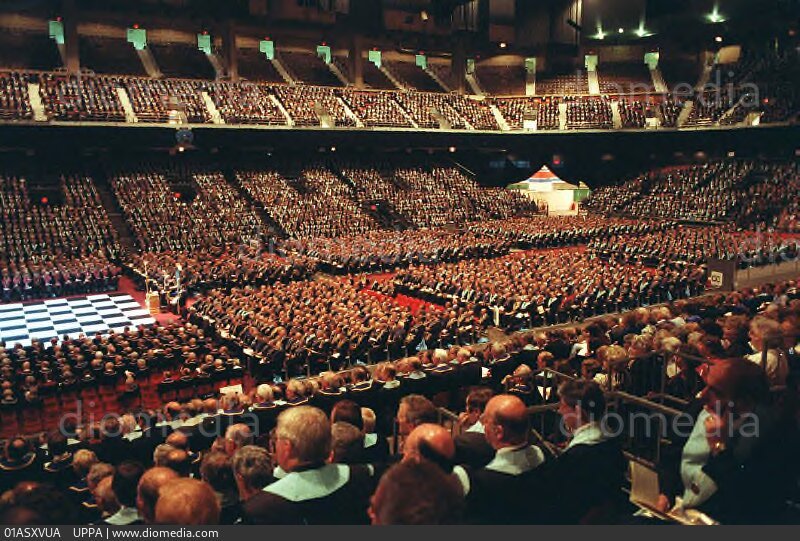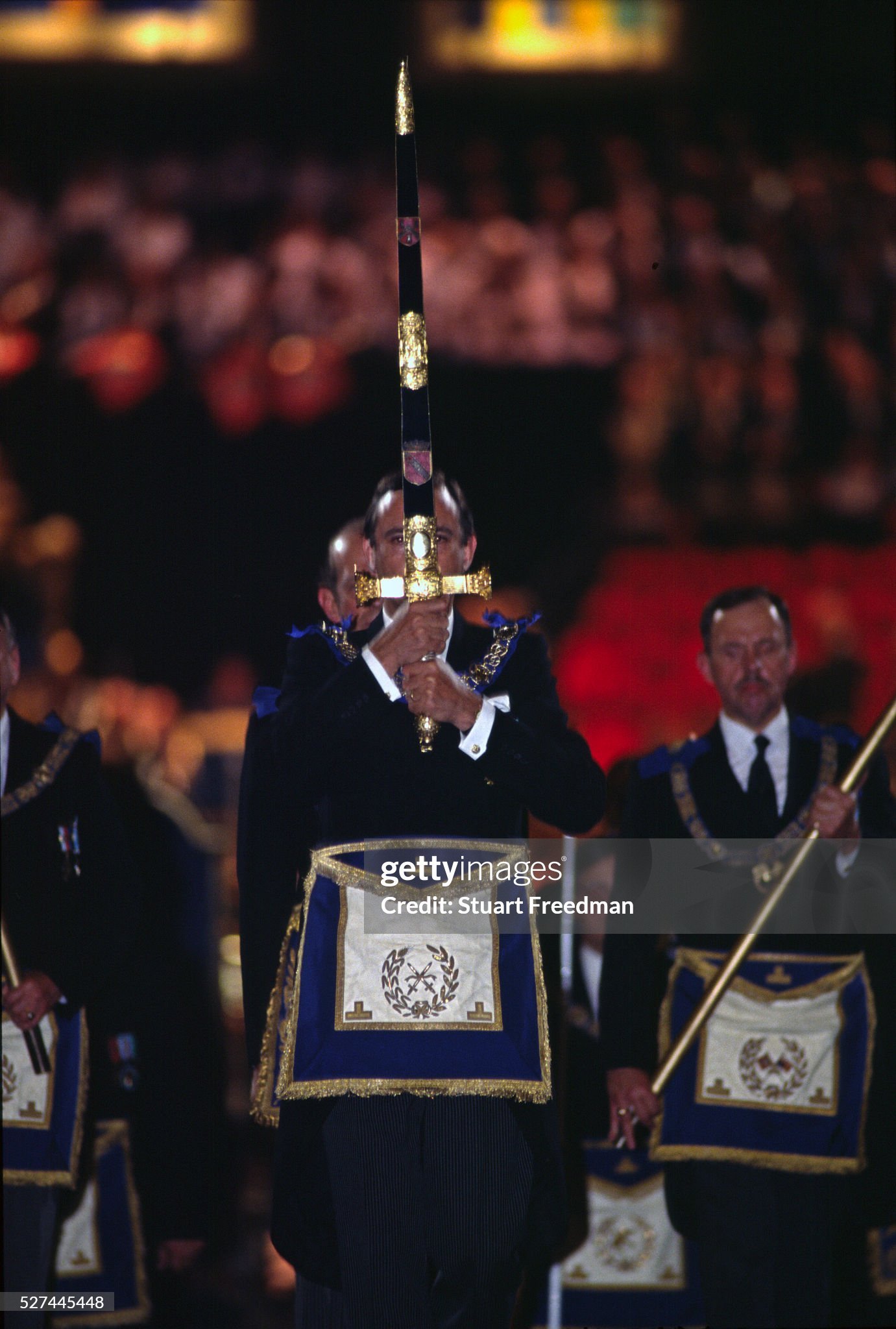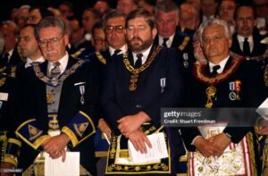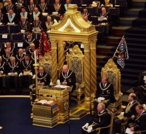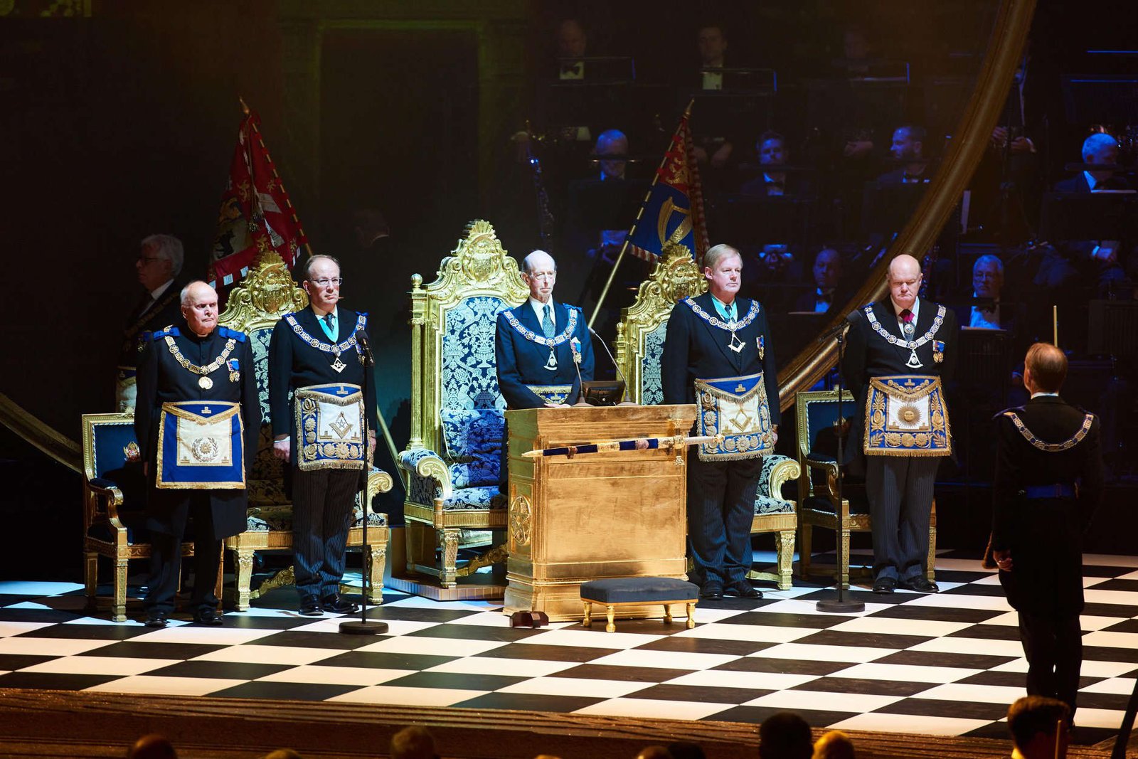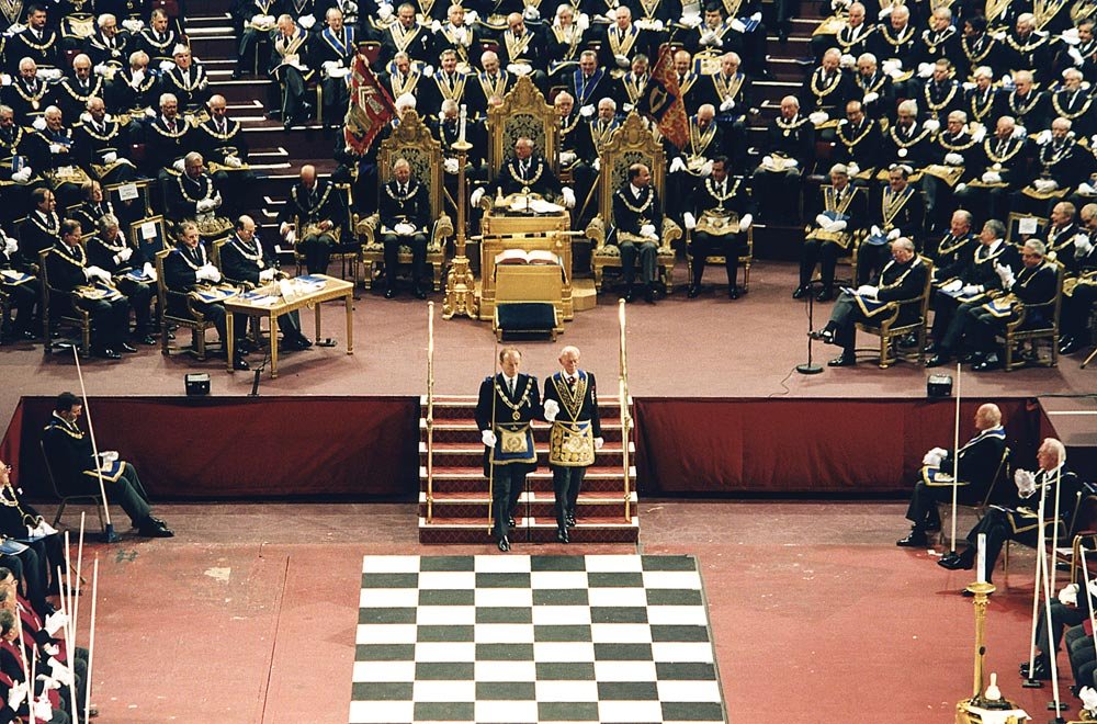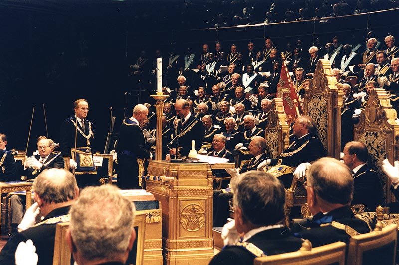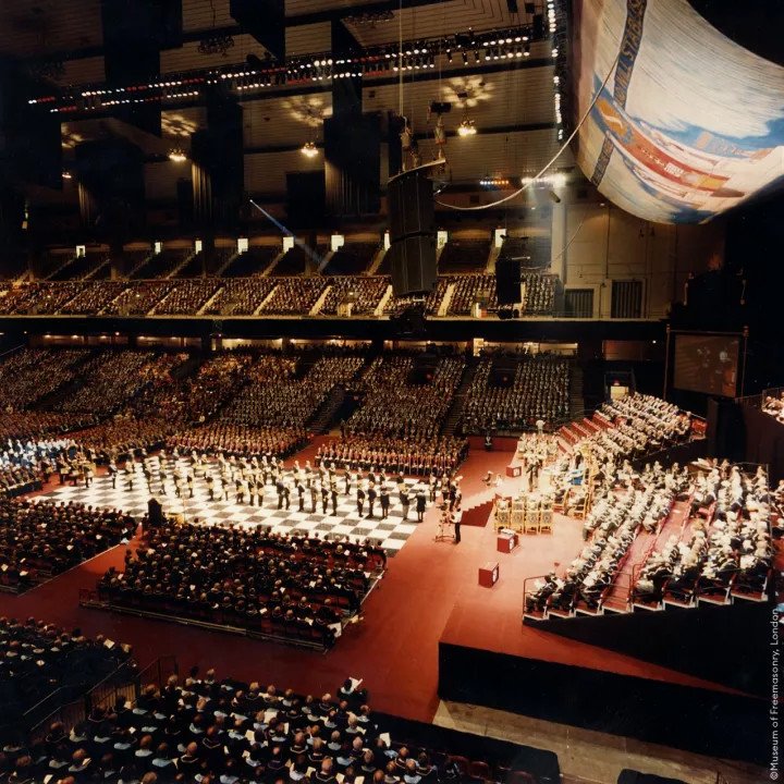 La siguiente celebración sucedió en 1992 en el londinense Earls Court Exhibition Centre. Se trata del 275.º Aniversario de la formación de la Gran Logia de Inglaterra, con el Duque de Kent en su trono como Gran Maestre de la masonería inglesa. Sillón reservado de manera tradicional a la Familia Real Británica.