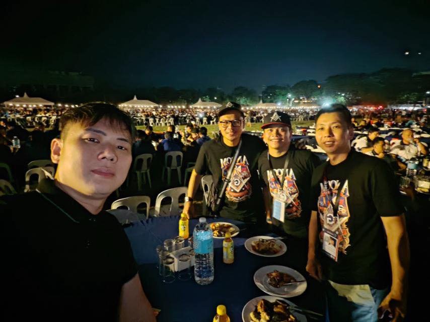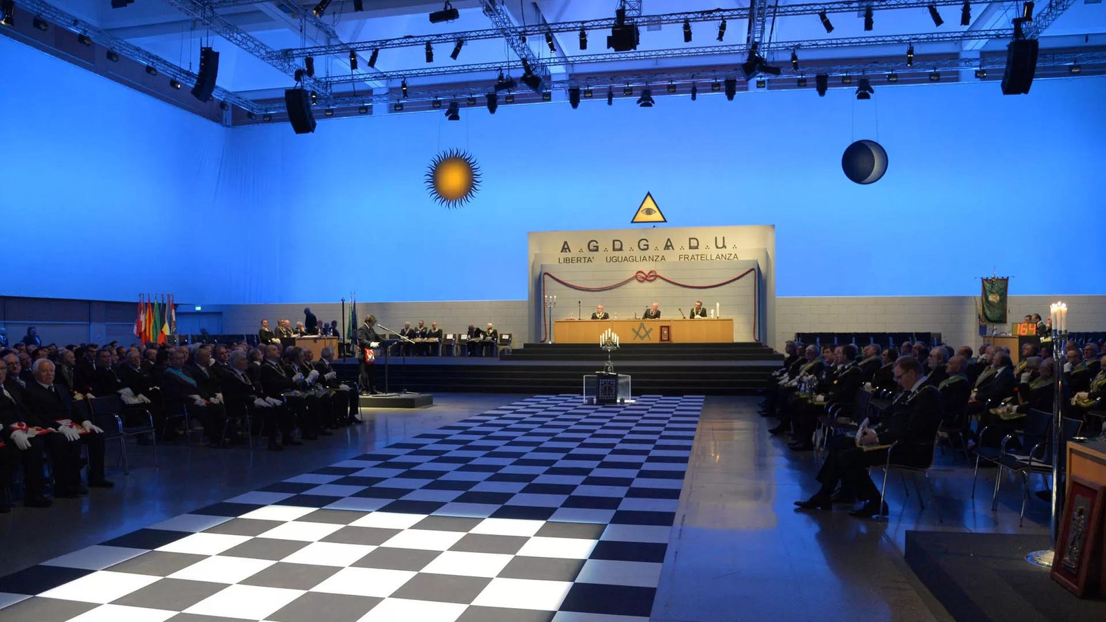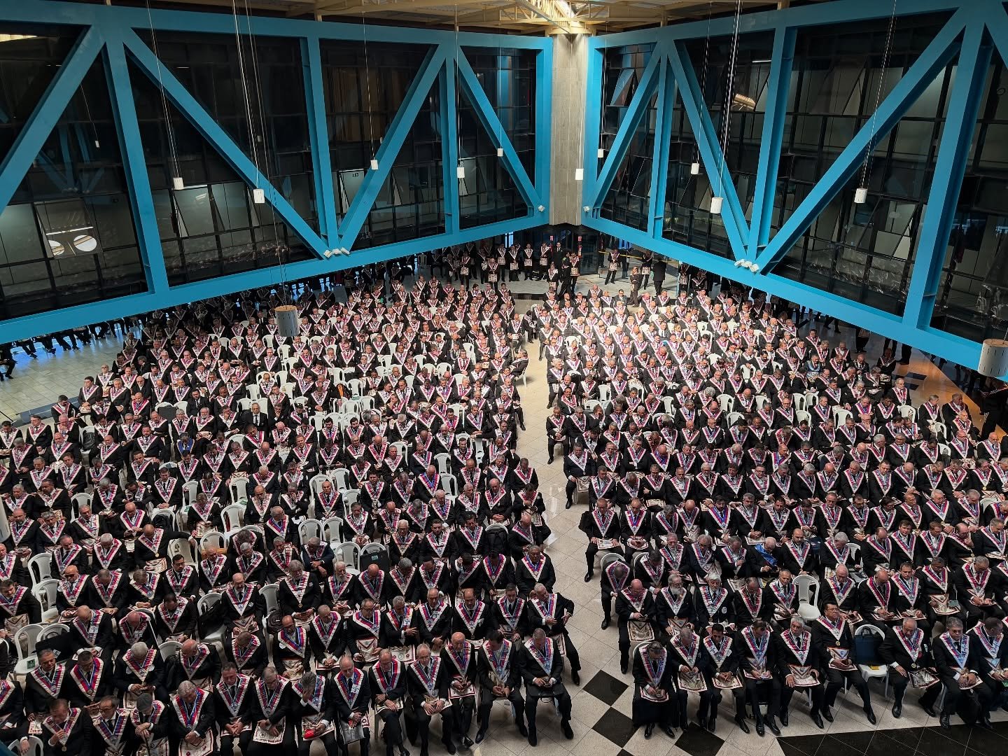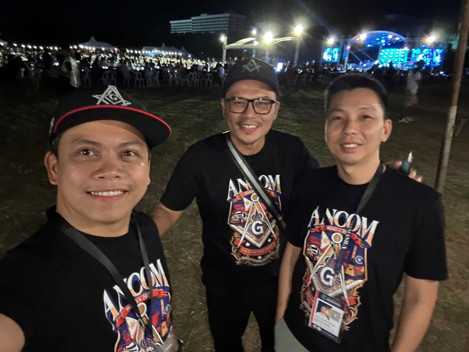 El siguiente ejemplo es del centro de convenciones «World Trade Center Metro Manila, in Pasay City». Se trata de una ceremonia de Instalación (reemplazo del Gran Maestre de la Gran Logia de Filipinas) del 107 ° Gran Maestre de Masones en la Jurisdicción de Filipinas, en abril de 2025, con concierto nocturno al aire libre. Normalmente tras la reuniones más o menos solemnes, grandes y pequeñas, suelen acabar en cena y celebración.