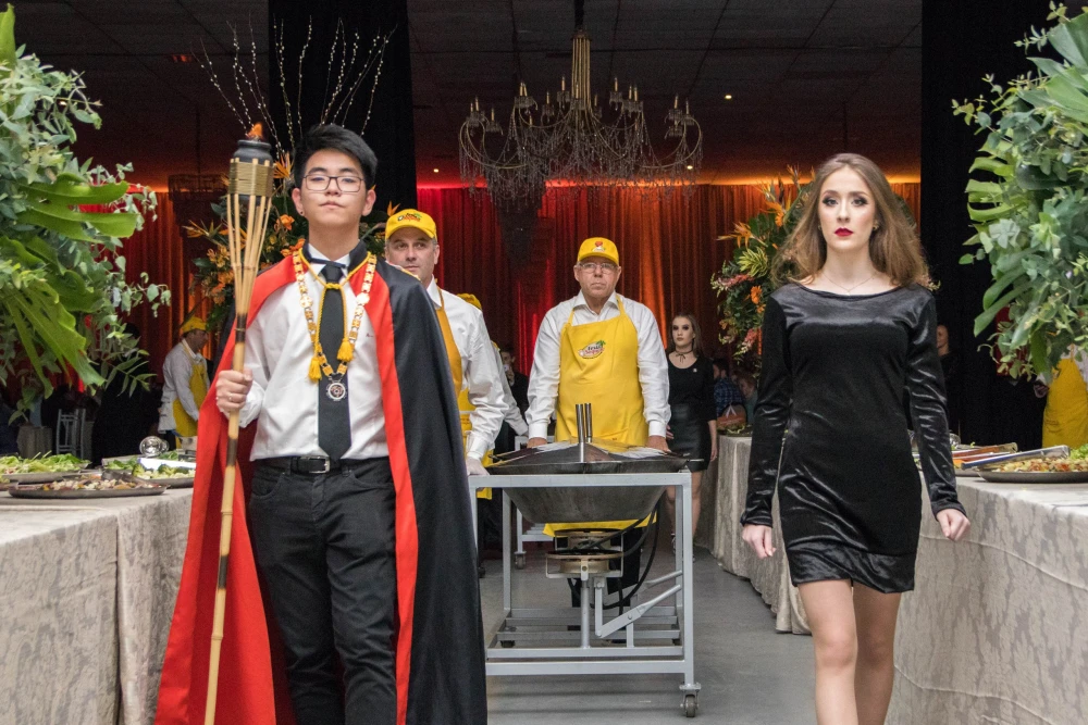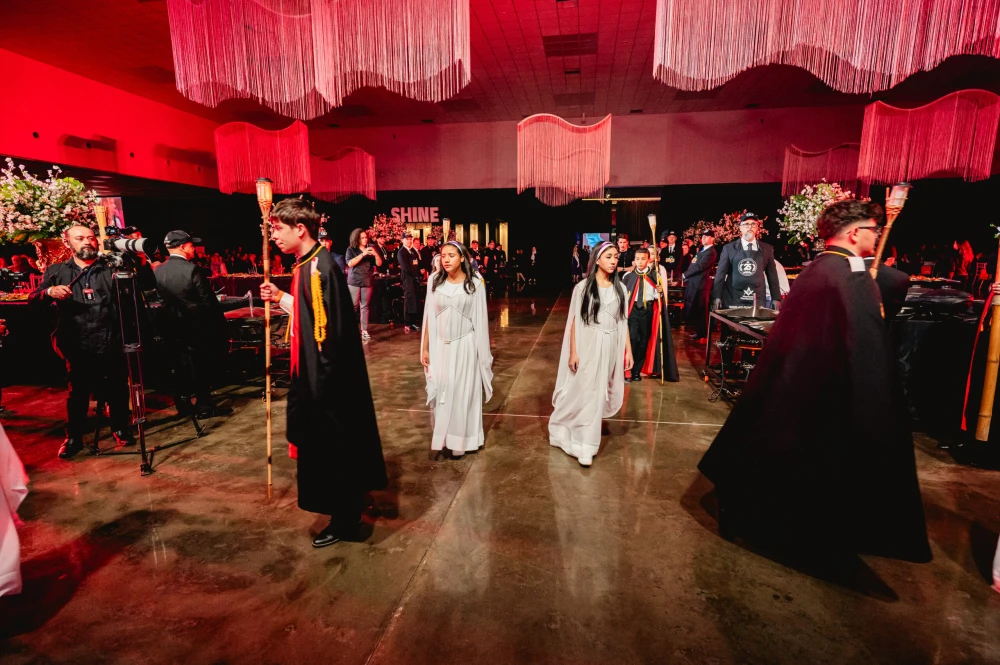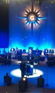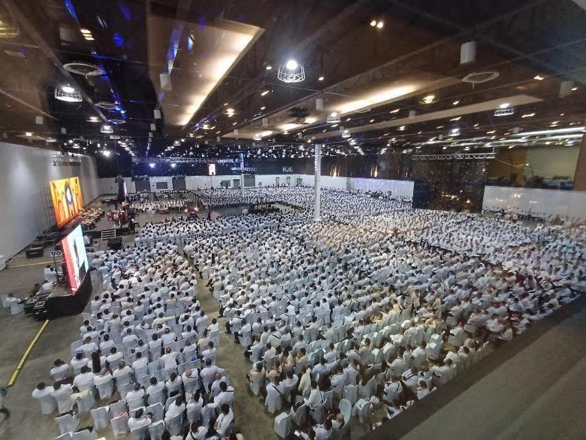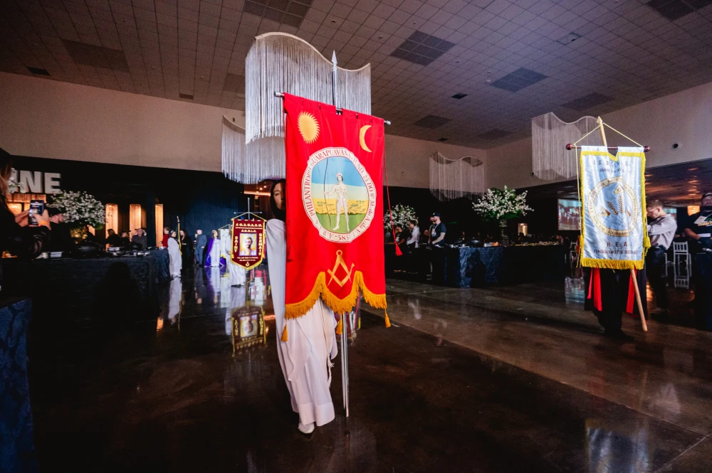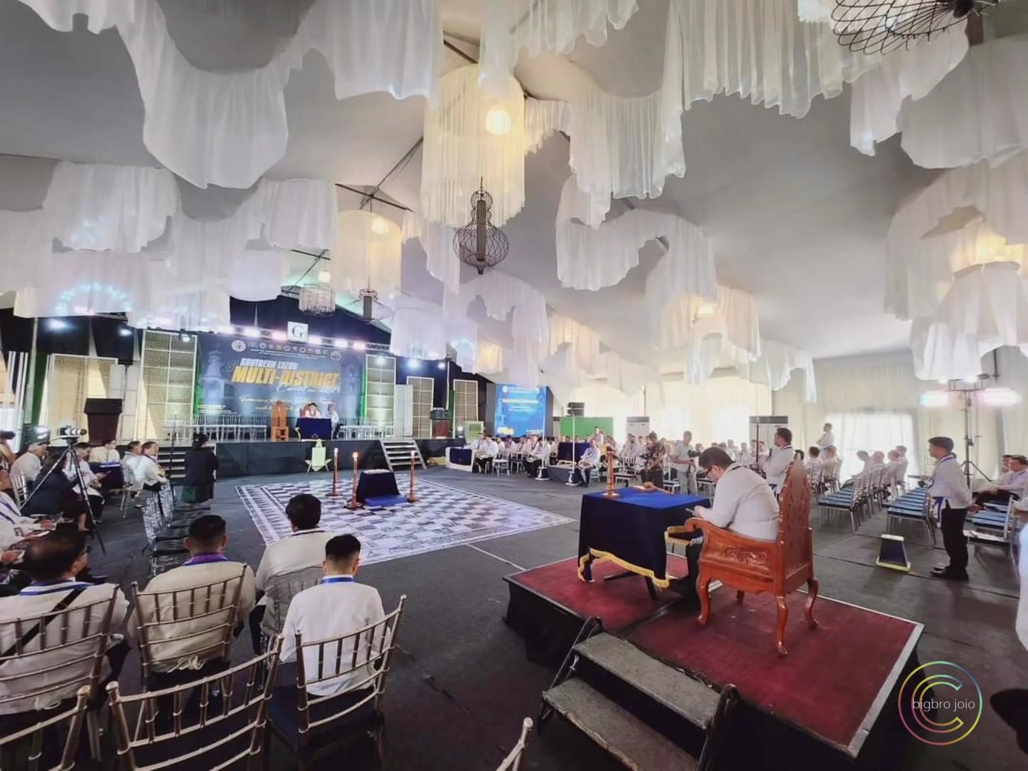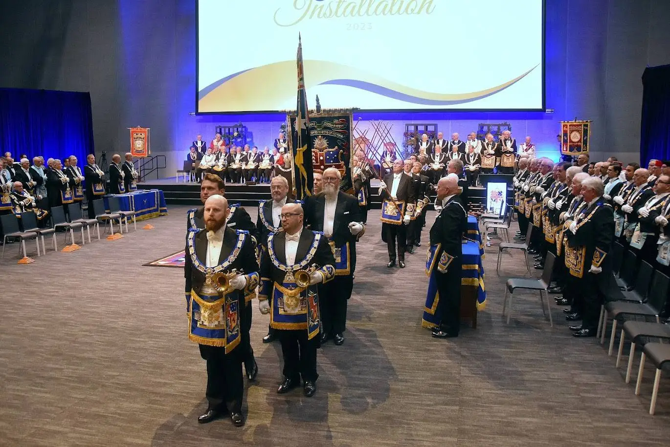 El siguiente ejemplo es del centro de convenciones «World Trade Center Metro Manila, in Pasay City». Se trata de una ceremonia de Instalación (reemplazo del Gran Maestre de la Gran Logia de Filipinas) del 107 ° Gran Maestre de Masones en la Jurisdicción de Filipinas, en abril de 2025, con concierto nocturno al aire libre. Normalmente tras la reuniones más o menos solemnes, grandes y pequeñas, suelen acabar en cena y celebración.