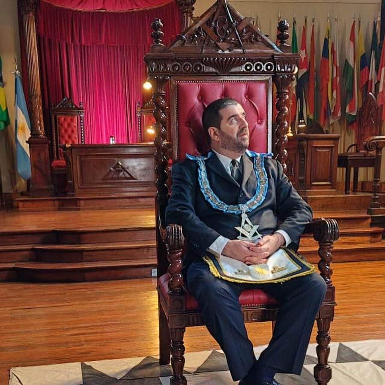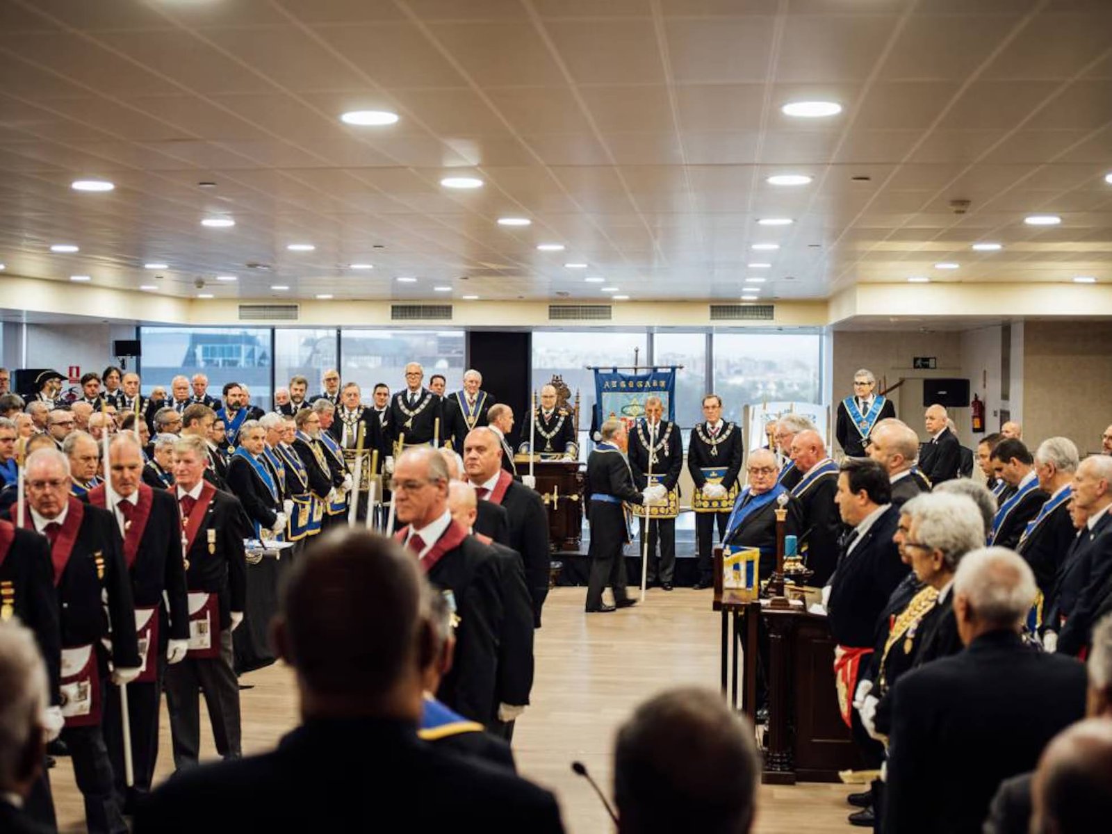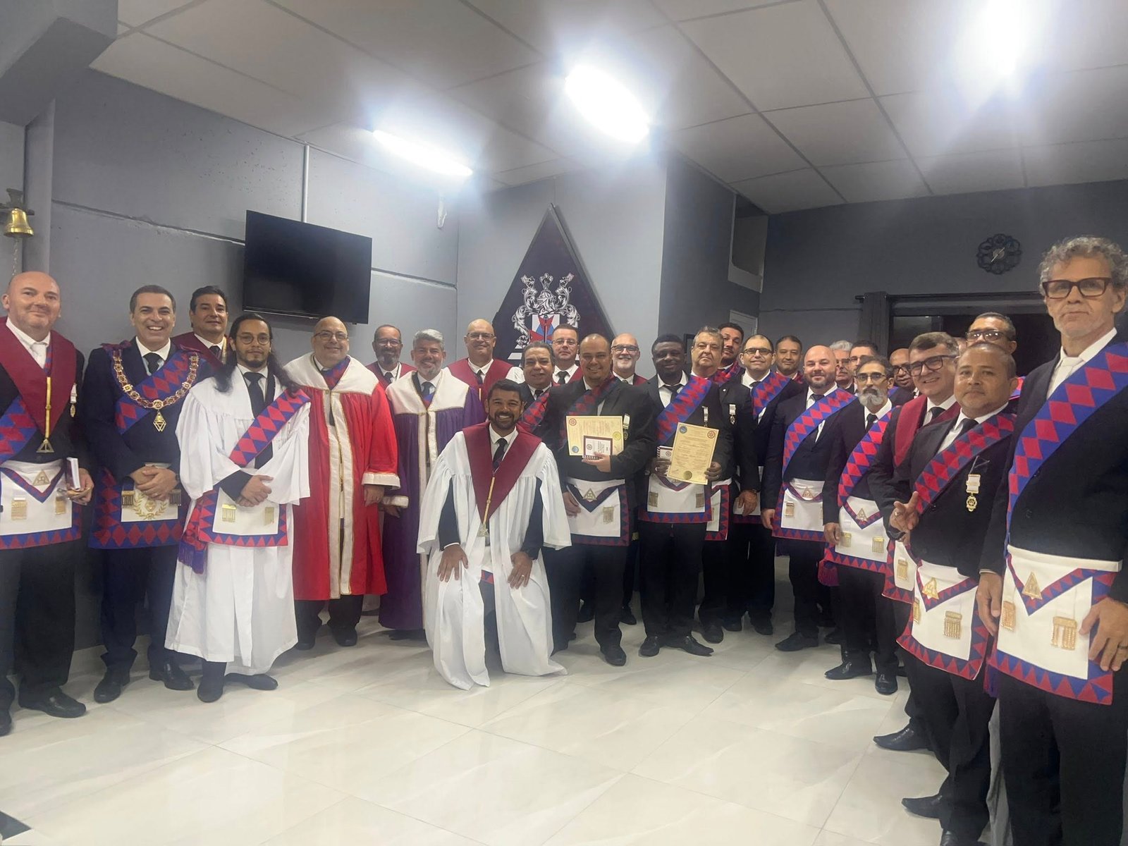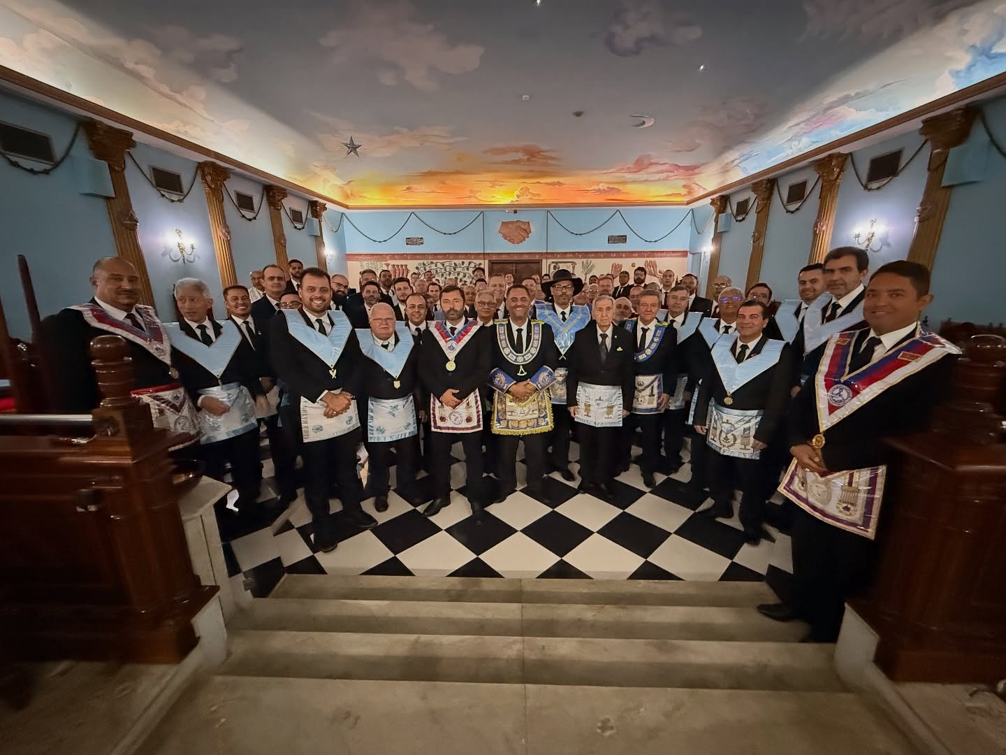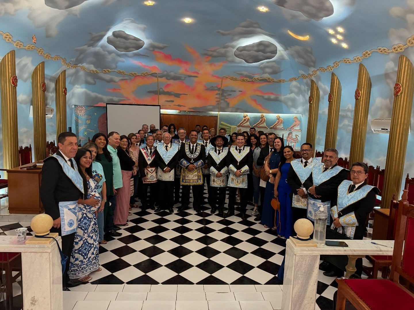 Nota: En las siguientes imágenes que verán del interior de las logias comprueben si ven alguna menorá o palabra del alfabeto hebreo decorando la sala