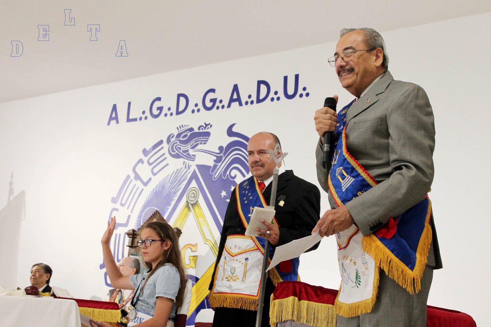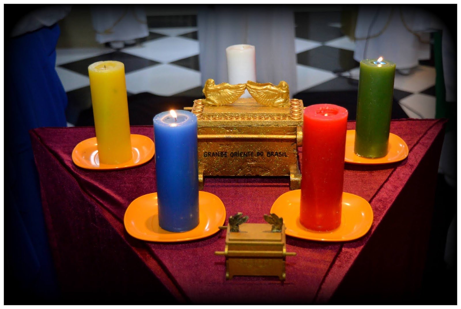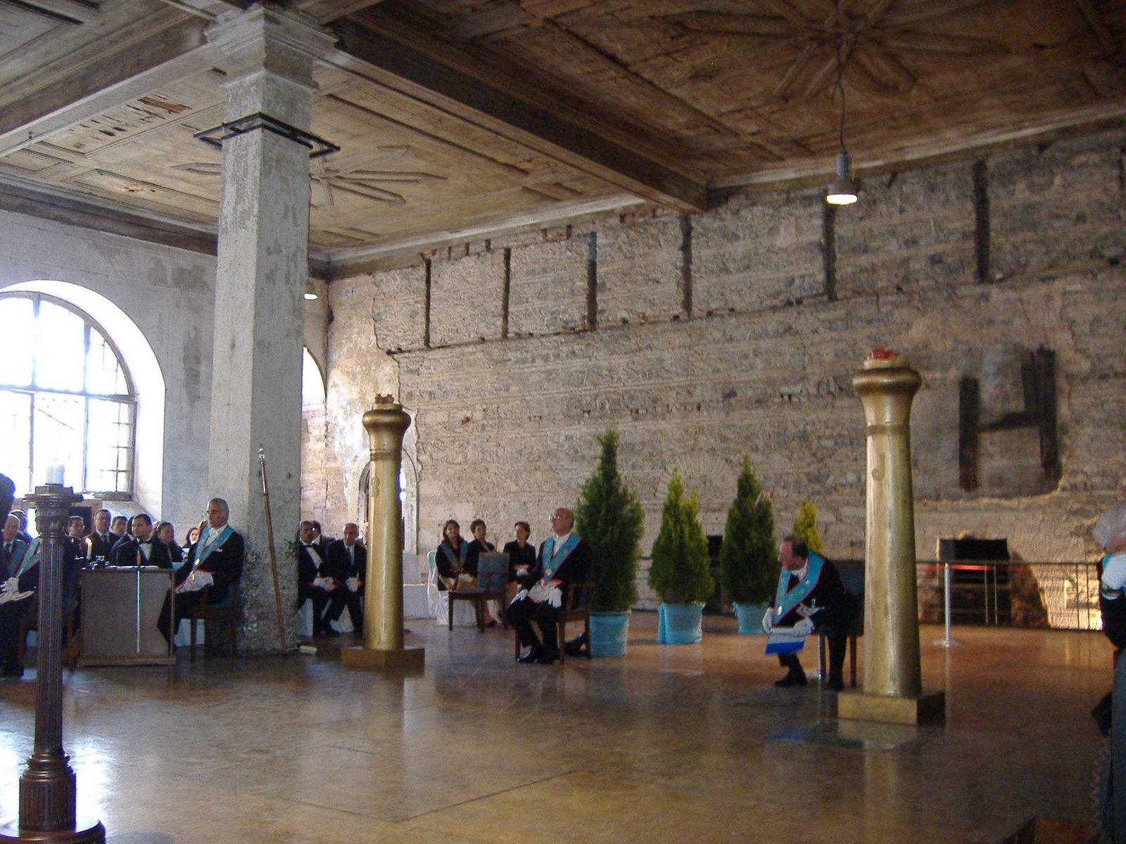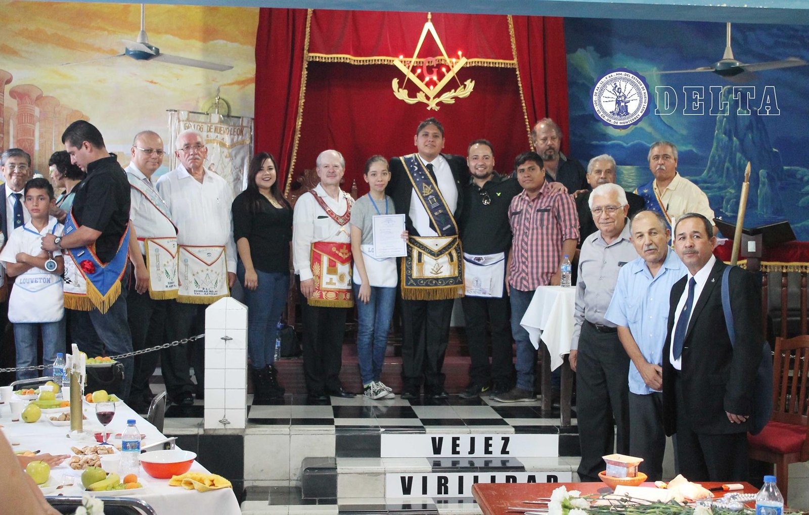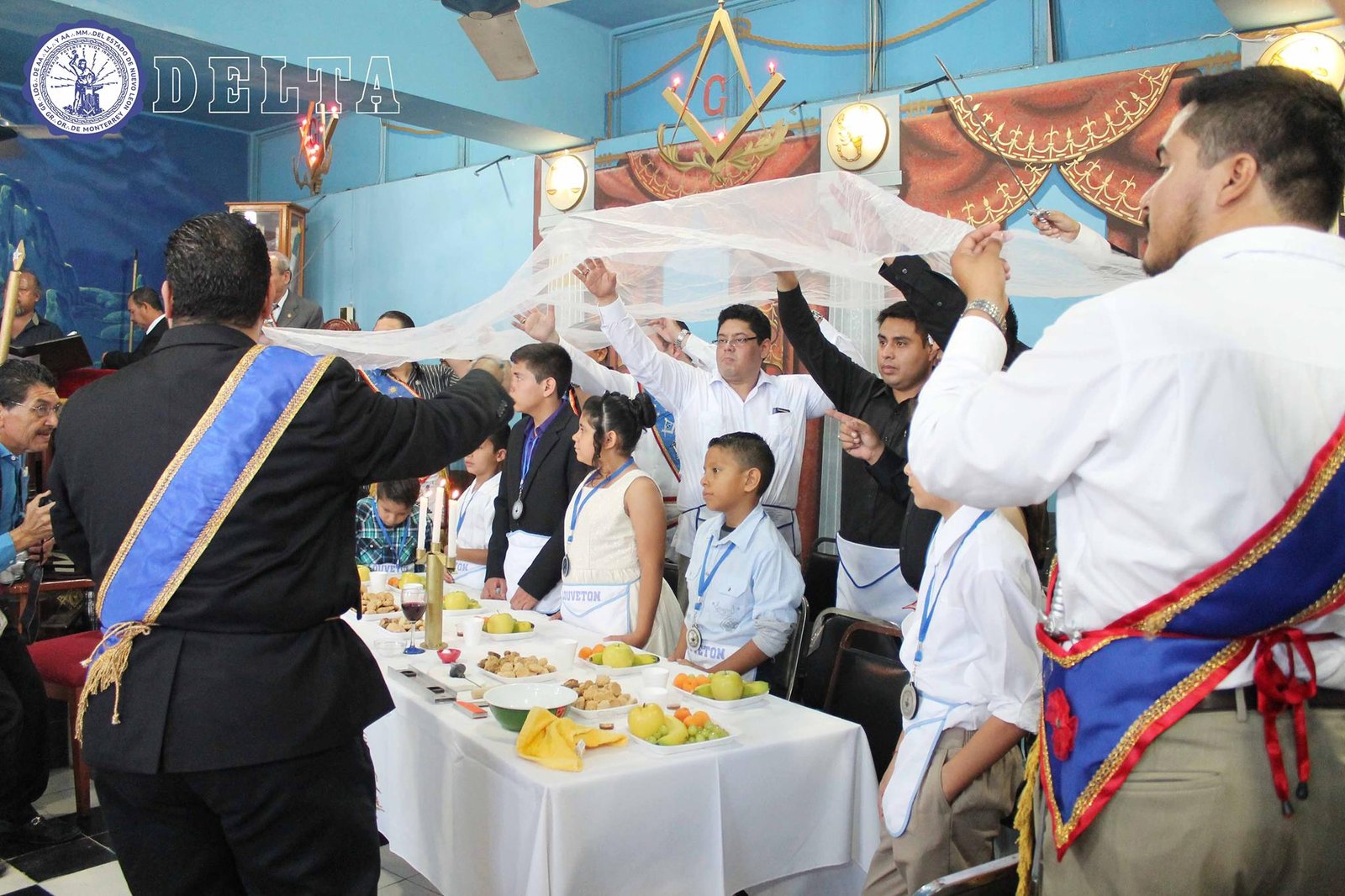 Nota: En las siguientes imágenes que verán del interior de las logias comprueben si ven alguna menorá o palabra del alfabeto hebreo decorando la sala