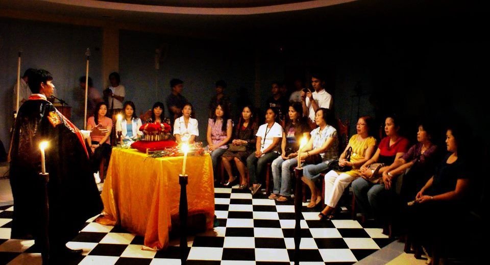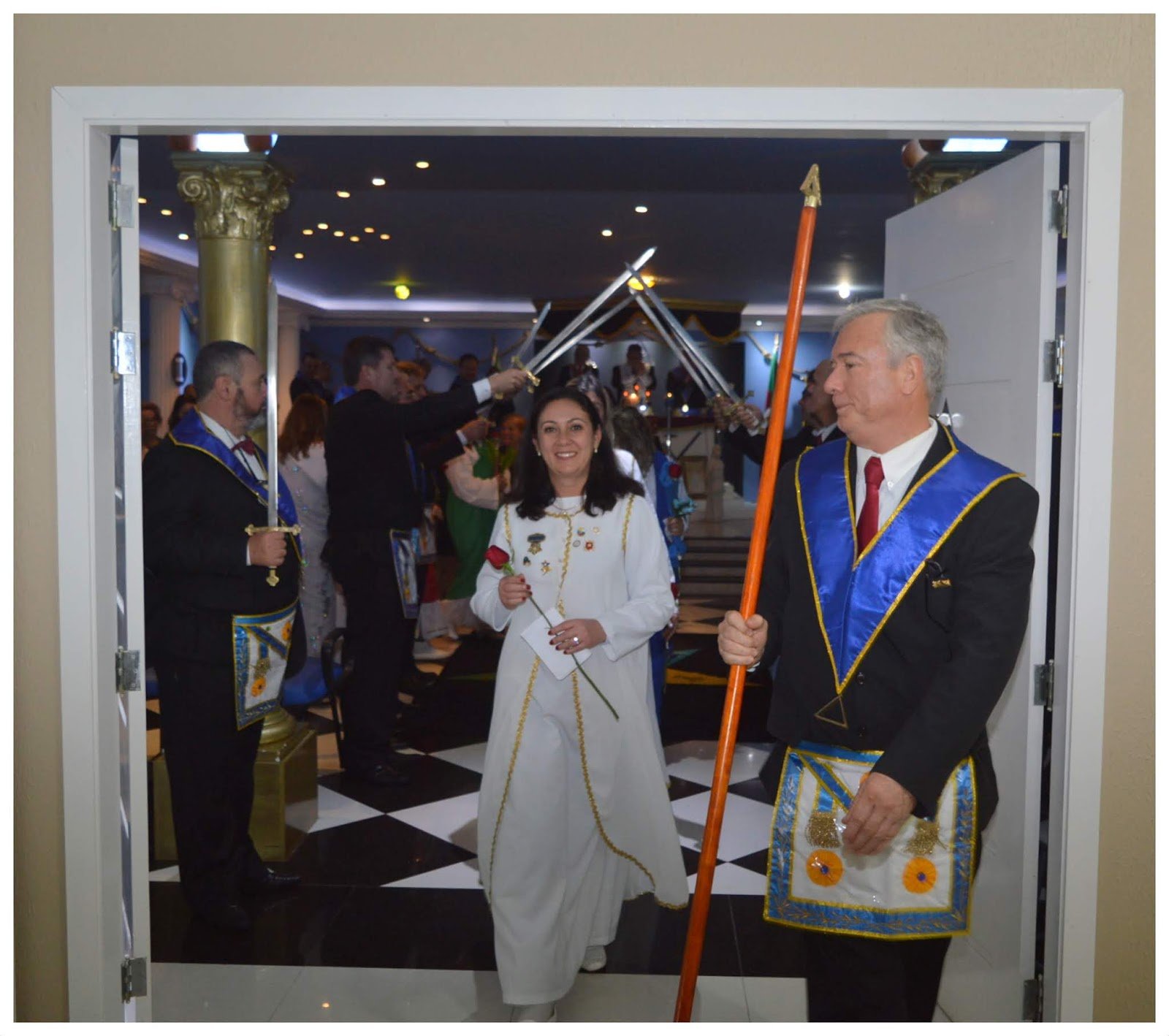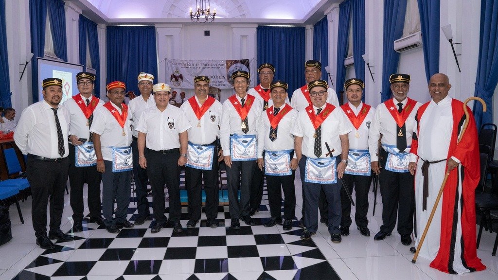 El siguiente ejemplo es una ceremonia privada (sin familiares y amistades no masones invitados, pero sigue siendo una tenida blanca. Es decir, que se puede mostar en imágenes) en la ciudad filipina de Dumaguete, de 95.000 habitantes. Ceremonia de dos días donde el día anterior, 27 abril de 2023, recibieron delegaciones de otras Grandes Logias extrajeras: Grand Lodge of Japan, Grand Master of the Grand Lodge of New South Wales, Grand lodge of Victoria, Grand lodge of Alberta, Grand lodge of Manitoba, Grand lodge of Nevada, Grand lodge of Hawaii, Grand lodge of Italy y Grand lodge of British Columbia.