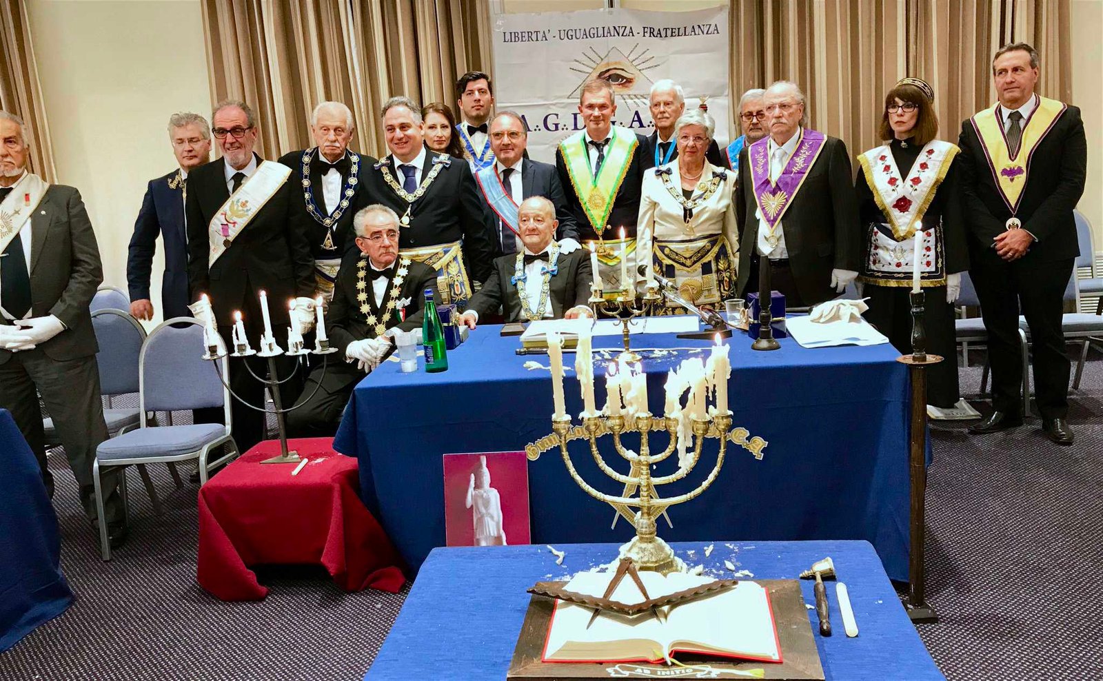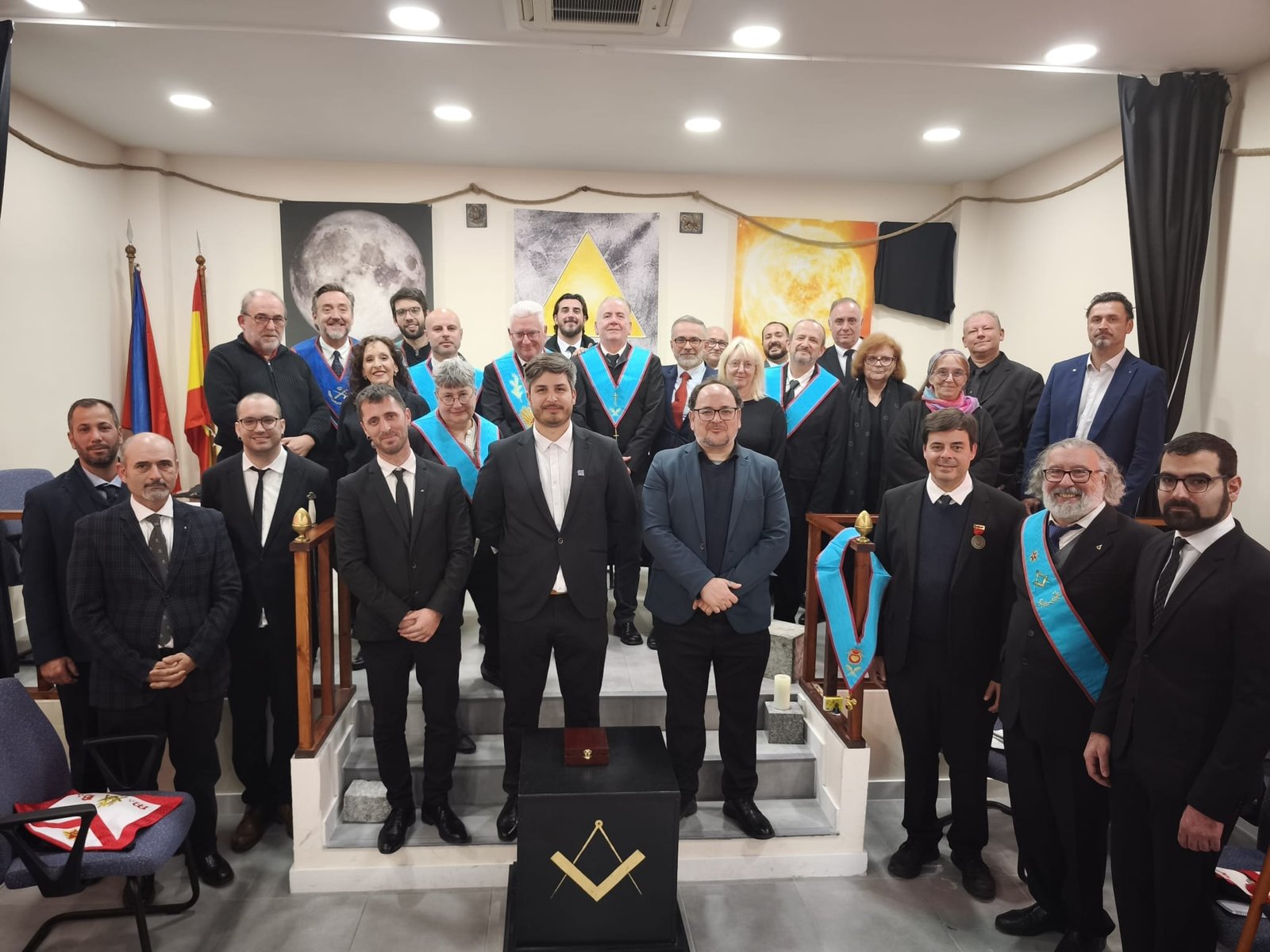 Cuando tienen alguna tenida (reunión masónica o ceremonia), al final de ésta, suelen hacer algún retrato de grupo. Y normalmente también tras la tenida suelen acabar en una cena de celebración.