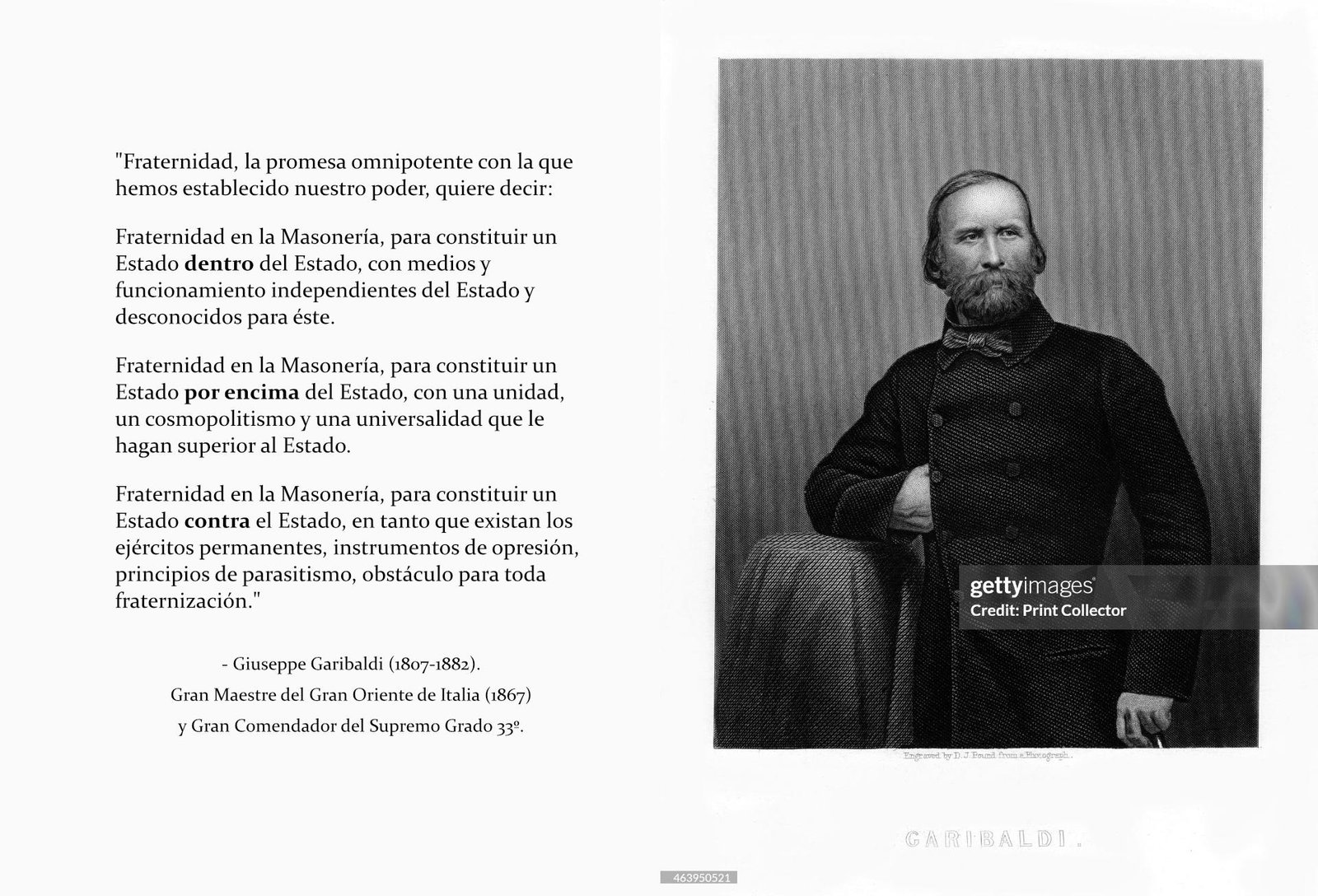 «Los gobernantes civiles tendrán todos un mismo plan, que será abolir y hacer desaparecer todo principio religioso (cristiano), para dar lugar al materialismo, al ateísmo, al espiritismo y a toda clase de vicios.»