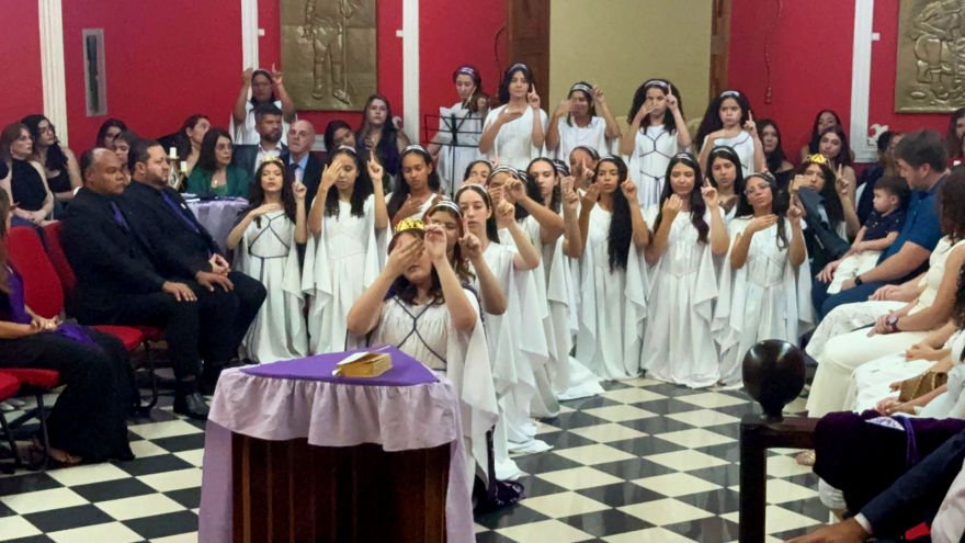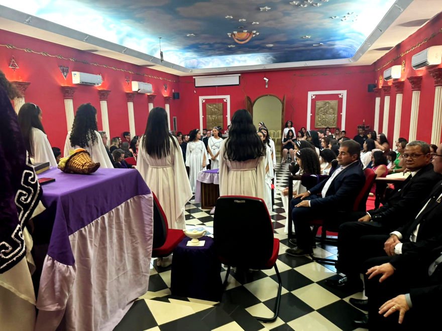 A continuación y como ejemplo, una tenida titulada Congreso Estatal de las Hijas de Job, en una pequeña logia del Estado de Mato Grosso, Brasil.