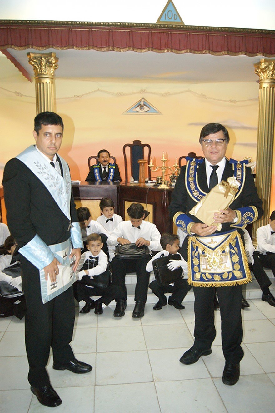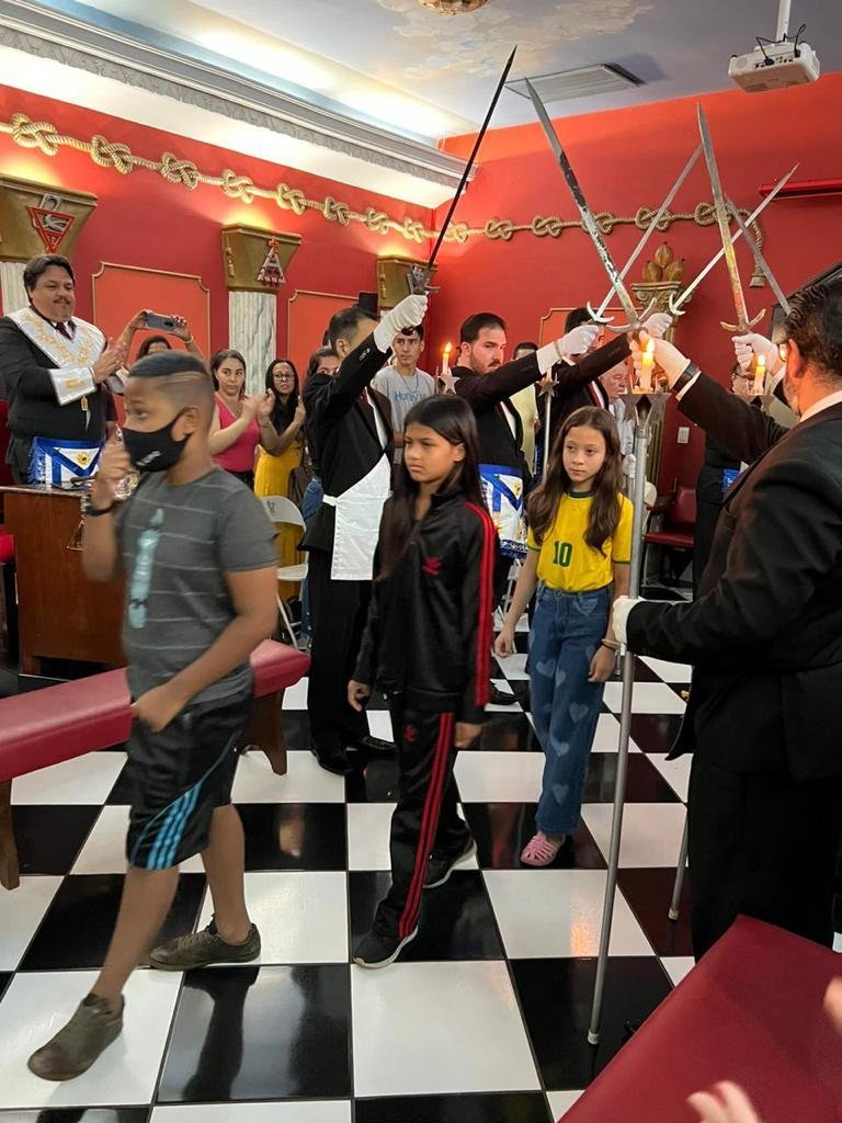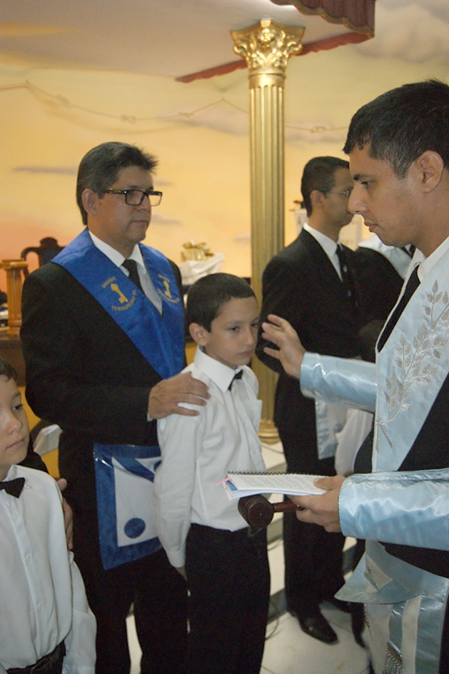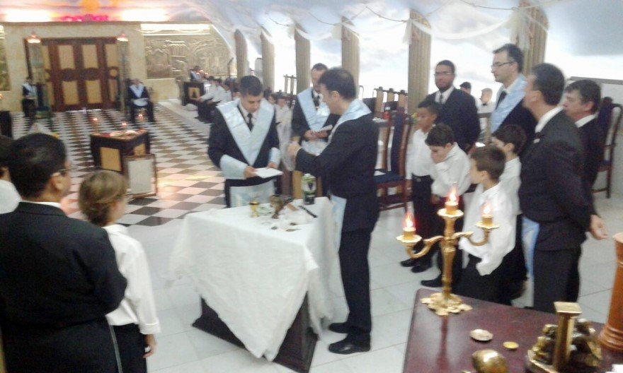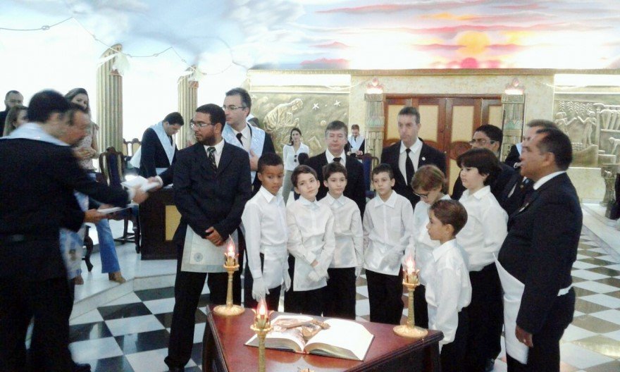 A continuación el ejemplo de lo que llaman Adopción de Luvetones o Lowtons. Se trata de una logia de la provincia de Mato grosso, Brasil. La Logia Cavaleiros da Esperança Nº 01 (enlace, enlace). Dejo algún ejemplo más (enlace, enlace, enlace, enlace) de este ingreso de infantes en la masonería, los propios hijos.