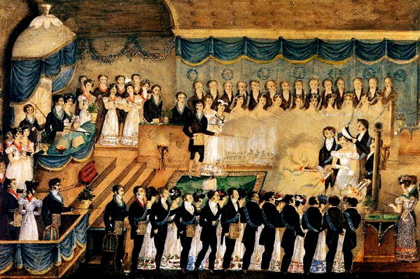Ejemplo de integrantes de una logia estadounidense del siglo XIX.