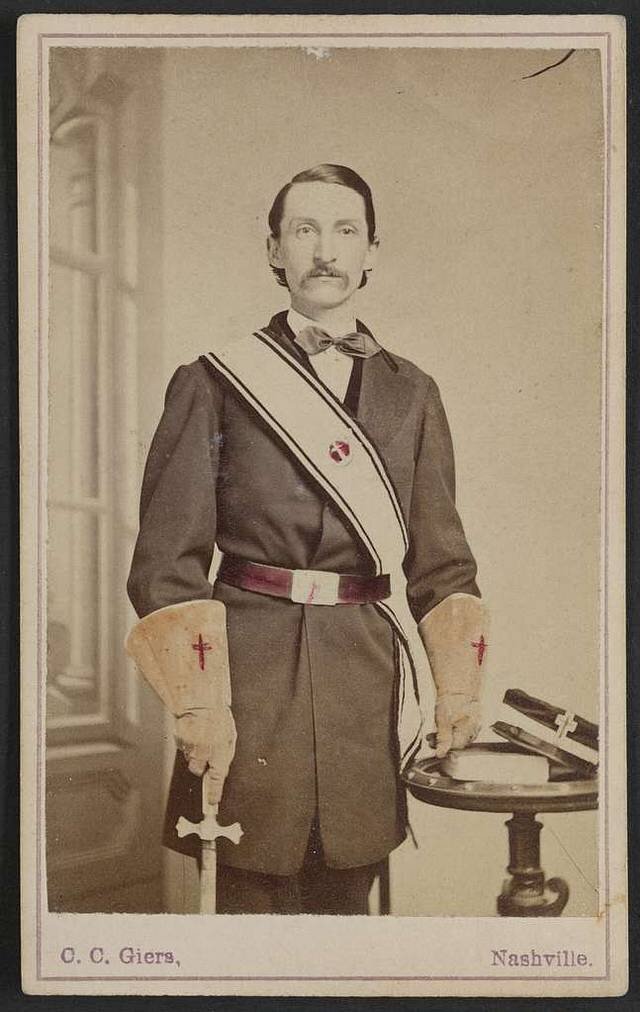 «En una de las reuniones posteriores de Nashville, el general Nathan Bedford Forrest fue elegido Mago Imperial del Klan. Albert Pike organizó el Ku Klux Klan en Arkansas después de que el general Forrest nombrara a Pike el Gran Dragón de ese Reino. Los líderes de Tennessee del Klan en el momento de su fundación eran prominentes masones subordinados al Gran Comandante Pike.»