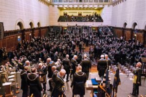 La siguiente celebración de 2017 fue presidida por el Gran Maestre el Duque de Kent, y el recinto pudo acoger a poco más de 4000 masones de 136 Grandes Logias. Una Gran Logia (o Gran Oriente) es una logia independiente que coordina a las demás logias del país, éstas reunidas y organizadas en forma de federación.