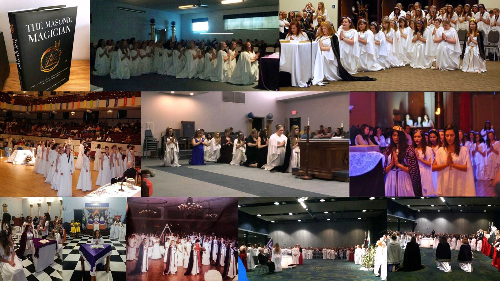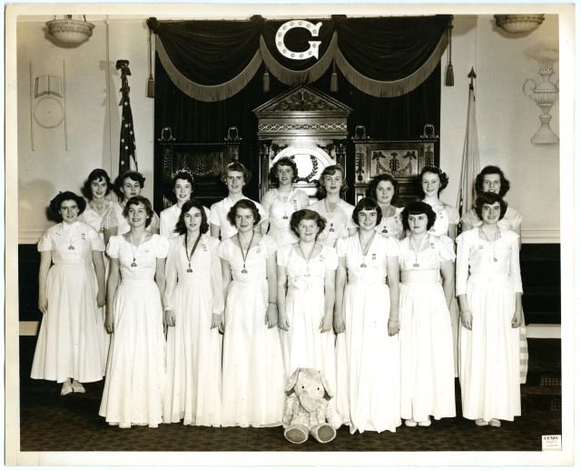 La siguiente primera imagen se titula «1940’s Job’s Daughter». En resto de imágenes, excepto la última, son de la Orden Job’s Daughter en distintas logias de Pennsylvania, Columbia o California. La última imagen se titula «Rainbow Girls Officers (January 13, 1950)».