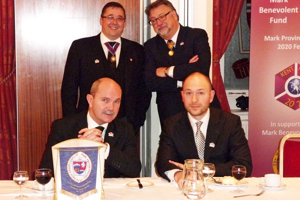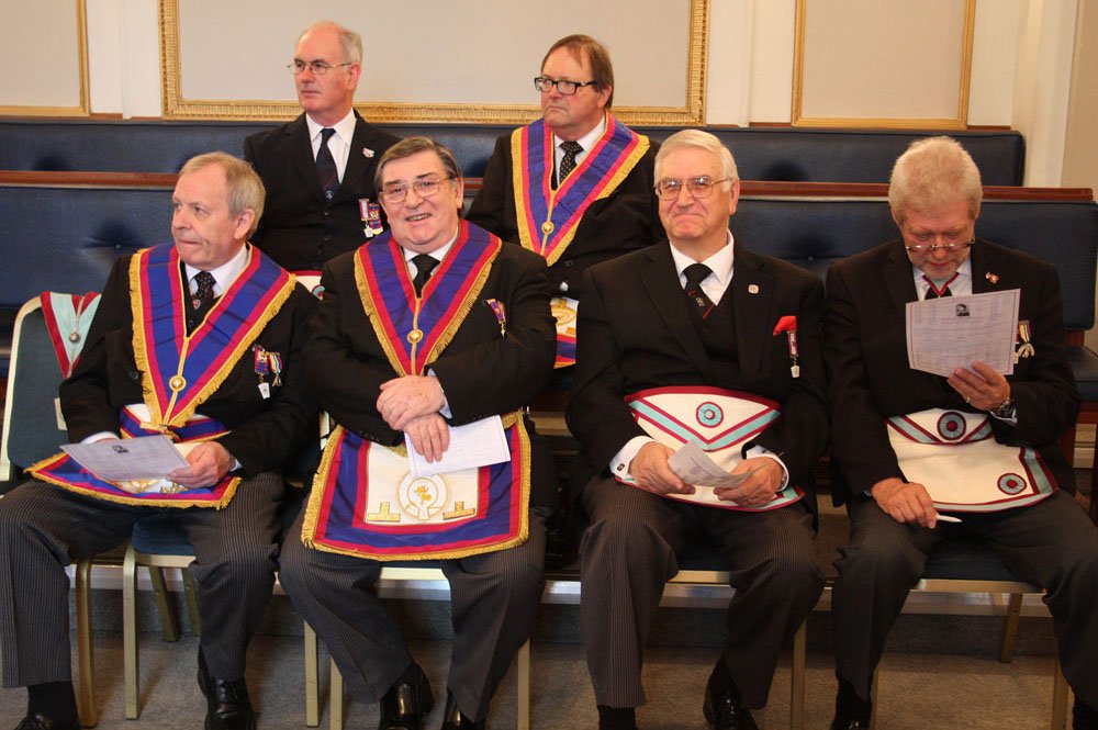 El siguiente ejemplo es de una logia del condado de Kent (www.kentmarkmastermasons.org.uk), Inglaterra. La Iglesia británica sucumbió en manos de la masonería en el siglo XVI, de la mano del judaizado hereje Martín Lutero. En las imágenes verán a un masón vestido con alzacuellos. Y desde la muerte del último Papa legítimo, el Papa Pío XII en 1958, la Iglesia Católica por infiltración está en la misma situación, en manos de sus enemigos.